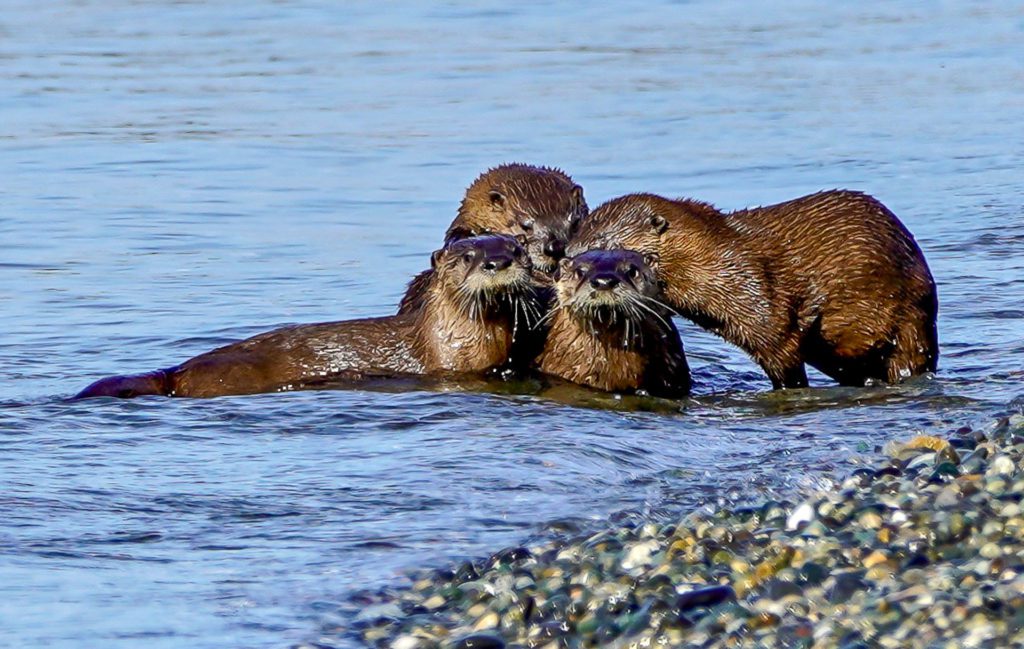 Despite the name, river otters can also be found foraging in the ocean and running along the beaches. They can often be seen in packs of 3-4 individuals.