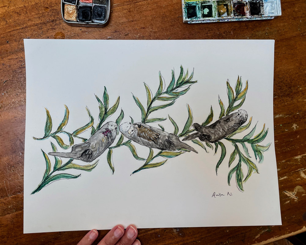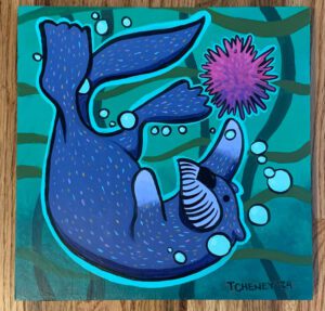 The Elakha Alliance collected 26 donated art submissions from 24 artists, in addition to 20 high school student submissions from North Bend High School, for a hybrid silent auction fundraiser in honor of Sea Otter Awareness Week. Through the power of art, we seek to raise awareness about the importance of returning sea otters back to Oregon and their role in maintaining productive and diverse nearshore marine habitats.