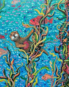 The theme for this event is Envisioning a Future with Sea Otters on the Oregon Coast. We encouraged artists to create art pieces that imagine a sustainable population of sea otters along the Oregon coast, and with their presence, a healthier and more resilient coastal ecosystem.