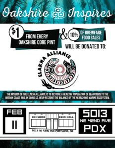 Indulge in fantastic craft beers, mingle with like-minded individuals, and contribute directly to the conservation efforts of Elakha Alliance. Stop by our table at the event to learn more about our work on the coast. Every dollar raised will make a significant impact. $1.00 per core pint of Oakshire Beer & 10% of Brew Fare food sales from the whole day will be donated to Elakha’s efforts to restore sea otters back to Oregon.