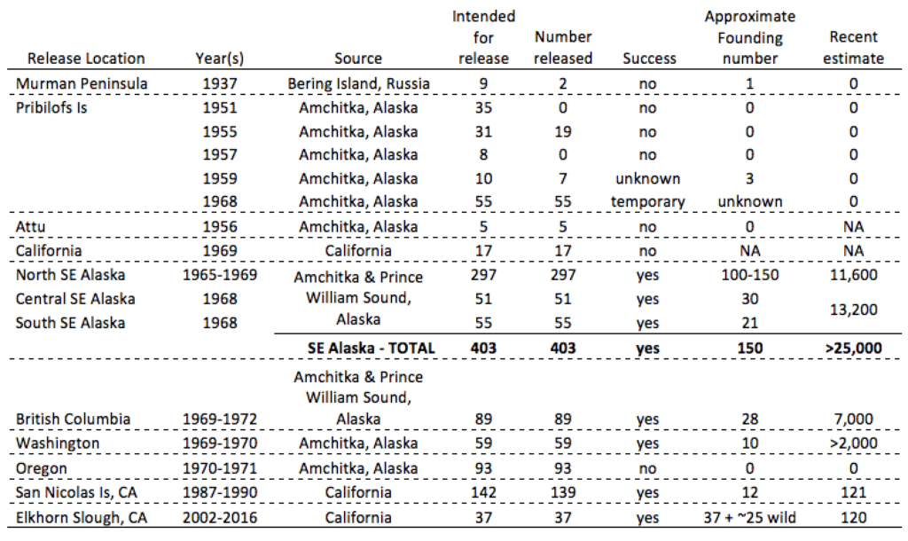 - Given suitable habitat, prey resources, and protection from human or other causes of death, translocations have proved an important tool in sea otter conservation.