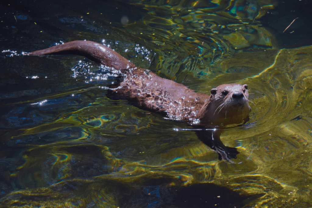 Despite the name, river otters can also be found foraging in the ocean and running along the beaches. They can often be seen in packs of 3-4 individuals.